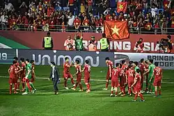 Under Nguyễn Hữu Thắng, Vietnam once again progressed to the semi-finals of the 2016 AFF Championship, but lost to Indonesia in another thrilling semi-final, being held 2–2 at home,[35] having lost 2–1 away.[36] The team's disappointment was relieved a little, as the Golden Star Warriors finished third in the 2019 AFC Asian Cup qualification World Cup qualification group. The Vietnamese side managed two draws in their opening run against Afghanistan in Tajikistan[37] and a goalless draw to Jordan in Ho Chi Minh City.[38] However, the Olympic side was surprisingly eliminated in the group stage of the 2017 SEA Games, and Nguyễn Hữu Thắng was relieved from duty. The team faced a crisis of confidence as many fans stopped supporting the team.[39] Interim coach Mai Đức Chung was appointed to help Vietnam in two crucial Asian Cup qualification matches against neighbouring Cambodia, in which he was able to replenish some of the team's lost spirit, beating Cambodia 2–1 away and giving them a 5–0 thrashing at home.[40] These wins placed Vietnam in the top two for final qualification.