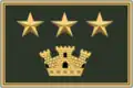 | Rank | English | Epaulette | Chest badge for operational uniform | Wrist badge | Fregio for cap | NATO Code equivalent |