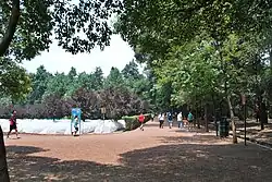 In the 1930s, the area became open to the public as a park and today, Viveros receives anywhere from 2,500 to 3,000 visitors each day, many of whom come to exercise, especially along its jogging paths.[3][6] Another popular pastime is the feeding of the park's very tame squirrels.[3][7] Squirrel overpopulation is a serious problem at the park, provoked both by the feeding and by the fact that there are almost no predators. Only four wild falcons are known to live in the area. The squirrels cause damage to mature trees and more so to the young plants in the seed beds, as they scurry between them looking for a place to hide. To combat this problem, feeding is not permitted in the nursery areas but is still allowed in other areas of the park.[7]