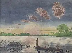 Guató canoe at sunset, by Hércules Florence