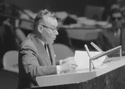 ![]() Walter Loridan at the 978th plenary meeting of the 15th United Nations General Assembly Session, 6 April 1961 | |