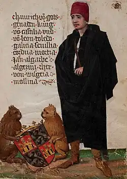 When the war started, John II had been King of Navarre since 1425 through his first wife, Blanche I of Navarre, who had married him in 1420. When Blanche died in 1441, John retained the government of her lands and dispossessed his own eldest son, Charles (born 1421), who was made Prince of Viana in 1423.[1] John tried to assuage his son with the lieutenancy of Navarre, but his son's French upbringing and French allies, the Beaumonteses, brought the two into conflict. In the early 1450s they were engaged in open warfare in Navarre.[2] Charles was captured and released; and John tried to disinherit him by illegally naming his daughter Eleanor, who was married to Gaston IV of Foix, his successor. In 1451 John's new wife, Juana Enríquez, gave birth to a son, Ferdinand. In 1452 Charles fled his father first for France, later for the court of his uncle, John's elder brother, Alfonso V at Naples.[3] From 1454 John governed his brother's Spanish realms—the Crown of Aragon—as lieutenant.[4]