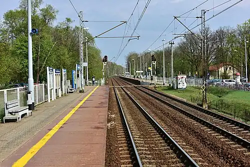 Warszawa Wola Grzybowska railway station is a railway station in the Wesoła district of Warsaw, Poland. As of 2012, it is served by Koleje Mazowieckie, who run the KM2 services from Warszawa Zachodnia to Łuków and by Szybka Kolej Miejska, who run the S2 services from Warszawa Zachodnia to Sulejówek Miłosna.