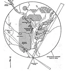 Washington metropolitan area airports with the Washington-Virginia Airport (on left) and showing the one-mile lateral area around the airport