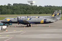 West Air Luxembourg was a subsidiary of FAST Logistics Luxembourg, founded in 2002[2] by West Air Europe. It primarily operated as an air feeder for express mail companies like TNT, DHL, FedEx, and UPS. Before its sale and dissolution in 2014, the company managed a fleet comprising 15 BAe ATPs and one ATR-72.
