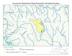 Course and Watershed of West Shreve Run (Oil Creek tributary)