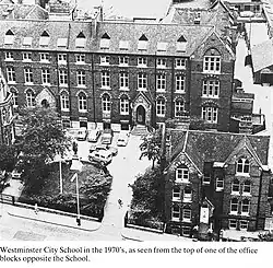 Westminster City School is a state-funded secondary academy for boys, with a mixed sixth form, in Westminster. The school educates over 800 students, with links to more than 100 different cultures, in a central London location. The school offers places at Year 7 entry, each year, to boys of Christian faith, other world faiths, and those of no faith. The current headteacher is Peter Broughton, while the current deputy headteachers are Jen Lockyer and Simon Brown.[1]