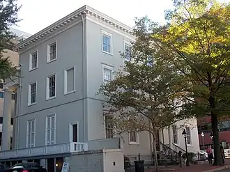The second White House of the Confederacy is a gray stuccoed neoclassical mansion built in 1818 by John Brockenbrough, who was president of the Bank of Virginia. Designed by Robert Mills, Brockenbrough's second private residence in Richmond was built on K Street (later renamed Clay Street) in Richmond's affluent Shockoe Hill neighborhood (later known as the Court End District), and was two blocks north of the Virginia State Capitol. Among his neighbors were U.S. Chief Justice John Marshall, Aaron Burr's defense attorney John Wickham, and future U.S. Senator Benjamin Watkins Leigh.