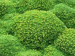 Vegetation on the archipelago is composed of grasses, ferns, and shrubs.[1] Around 363 species of vascular plants have been recorded on the island, 171 of which are native and 13 of which are endemic.[4] 21 species of ferns and clubmosses are recorded,[4] and 278 species of flowering plants have been recorded. There are no native tree species, although there are two species of bushes, fachine and native box. Some bogs and fens exist, freshwater plants include the soft-camp bog (Astelia pumila), dwarf marigold (Caltha appendiculata), gaimardia (Gaimardia australis) and the carnivorous sundew Drosera uniflora.[8]