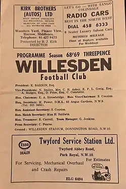 6. ^ "Dark Clouds Gather over Willesden FC". Harrow Observer. 27 January 1978.