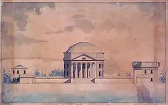 Illustration of the University of Virginia rotunda under construction in 1823 and completed in 1826