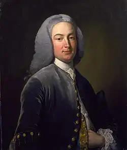 Murray had repeatedly refused to become a Member of Parliament, saying he had no interest in politics.[1] In 1742, however, the government of Sir Robert Walpole fell, and Murray's brother-in-law, Daniel Finch, 8th Earl of Winchilsea, became First Lord of the Admiralty in the new Cabinet. With this added political influence, Murray hoped to be appointed to a government office, and when Sir John Strange resigned as Solicitor General, Murray was made a Member of Parliament for Boroughbridge on 15 December 1742 and immediately succeeded Strange as Solicitor General.[1][25]