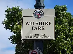 Sign identifying Wilshire Park as an Historic Preservation Overlay Zone by the City of Los Angeles