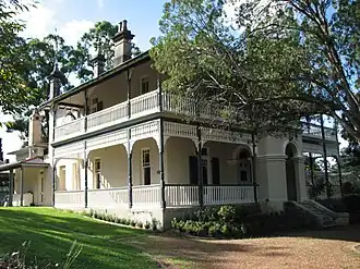 Woodlands (prior to its Federation style modifications) displayed many similarities to the c.1880 "Grandview" located on the Pacific Highway at Pymble.[1]