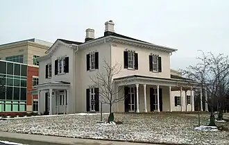 Woodlawn, is a historic slave plantation located at Columbia, Howard County, Maryland.[2] It is a two-story, stuccoed stone house built in 1840 with wood frame portions constructed about 1785. It was part of a 200-acre farm divided from larger parcels patented by the Dorsey family. The design reflects the transition between the Greek Revival and Italianate architecture styles. The home is associated with Henry Howard Owings, a prominent Howard County landowner and farmer, who also served as a judge of the Orphan's Court for Howard County. Owings purchased the property in 1858 and died at Woodlawn in 1869.[3] The former tobacco farm produced corn, oats, hay, and pork. The majority of the property surrounding Woodland and its slave quarters were subdivided by 1966 and purchased by Howard Research and Development for the planned community development Columbia, Maryland, leaving only 5 acres surrounded by multiple lots intended for development of an Oakland Ridge industrial center and equestrian center. The summer kitchen, smokehouse, corn crib and stable built about 1830 have been replaced by a parking lot.[4]