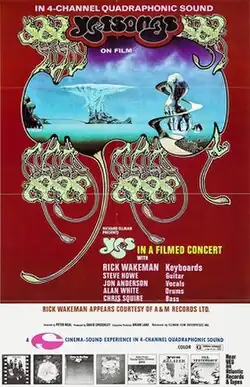 Excerpts from the film aired on the BBC television show The Old Grey Whistle Test on 1 May 1973.[3] The film premiered on 12 March 1975 with Quadraphonic sound at the Cinema Madison in Madison, Wisconsin.[2] This was followed by a theatrical run in Cincinnati, Ohio and Charlotte, North Carolina from 14 March.[2] These three cities were chosen as they were considered to be three key markets for the band in the US. Its release expanded to 20 other US cities in the spring of 1975.[4][5][6] The release of the Yessongs film co-incided with the North American release of the compilation album Yesterdays, which contains studio and two previously unreleased tracks from the band's debut line-up.[4] The film was presented as a double bill with Death of a Red Planet (1973), a short film depicting abstract images with lasers and mirrors by Elsa M. Garmire.