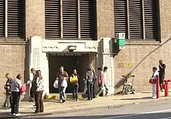There were proposals for a mezzanine at the station's south end, with an unbuilt entrance leading to the intersection of High Street and Jay Street.[15]: 7 The lack of an entrance created dangerous conditions. For example, when the northern exit was obscured by smoke during a fire in 2003, several commuters were hospitalized because they were mistakenly diverted to the south end of the platform.[18] In 2016, Delson or Sherman Architects proposed a new accessible entrance at the south end of the York Street station.[19]