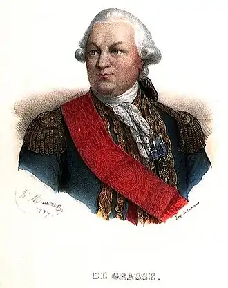 As the French fleet was preparing to depart Brest in March, several important decisions were made. The West Indies fleet, led by the Comte de Grasse, after operations in the Windward Islands, was directed to go to Cap-Français (present-day Cap-Haïtien) to determine what resources would be required to assist Spanish operations. Due to a lack of transports, France also promised six million livres to support the American war effort instead of providing additional troops.[11] The French fleet at Newport was given a new commander, the Comte de Barras. De Barras was ordered to take the Newport fleet to harass British shipping off Nova Scotia and Newfoundland, and the French army at Newport was ordered to combine with Washington's army outside New York.[12] In orders that were deliberately not fully shared with General Washington, De Grasse was instructed to assist in North American operations after his stop at Cap-Français. The French general, the Comte de Rochambeau was instructed to tell Washington that de Grasse might be able to assist, without making any commitment.[13] (Washington learned from John Laurens, stationed in Paris, that de Grasse had discretion to come north.)[14]