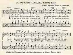 Folk song Zachodzi Słoneczko Między Lasy (The Sun is Setting Through the Woods) adapted by Andrzej Hławiczka, Zaranie Śląskie, 2/1909.