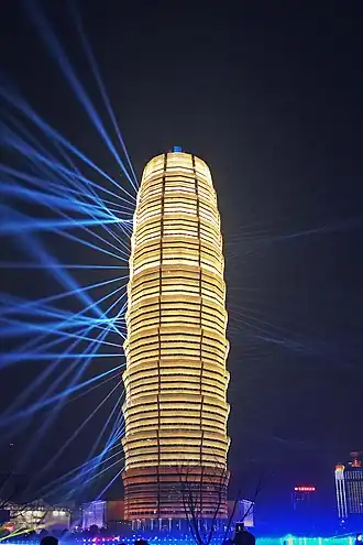 This building is often referred to as the "Big Corn" (Chinese: 大玉米) by local residents, due to its corn-like shape and all yellow lighting at night.