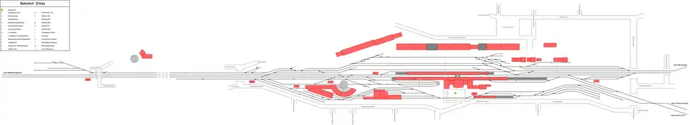 A map showing the extensive tracks of Zittau railway station as of 2012.